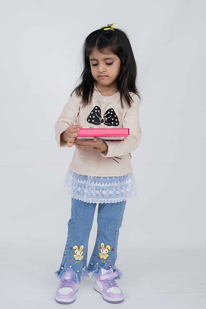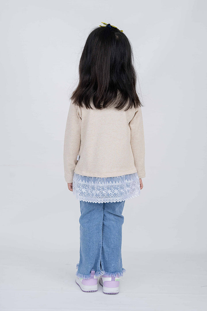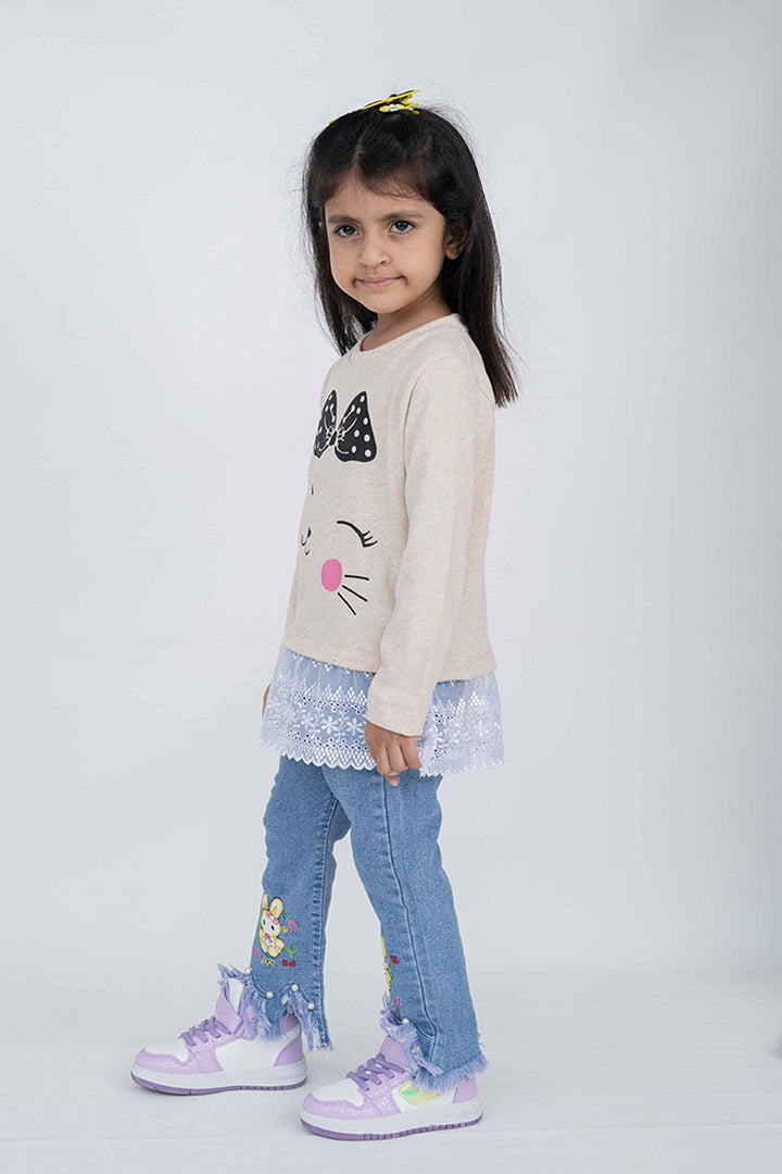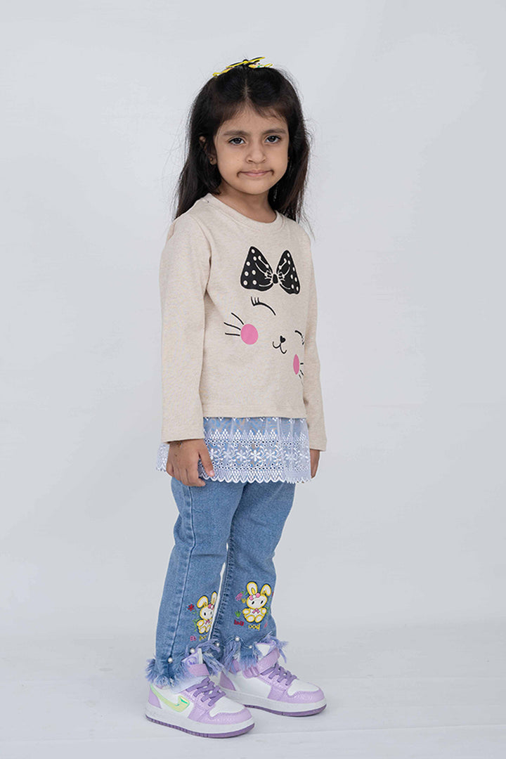 Brighten up your little one’s wardrobe with our Beige Cute Kitty Face Top featuring pink cheeks, whiskers, a sweet bow design, and pretty lace detailing for an adorable touch!