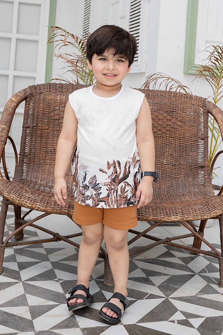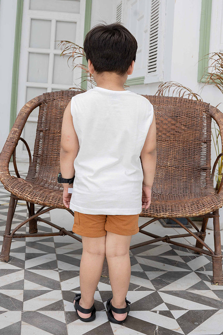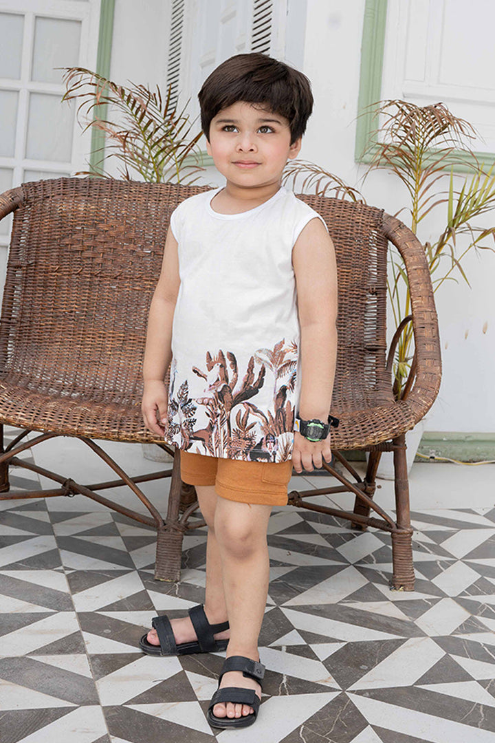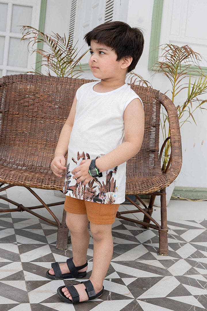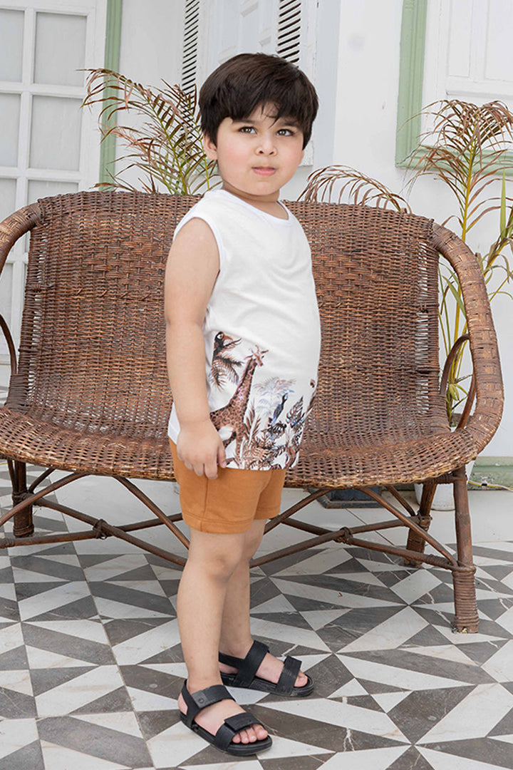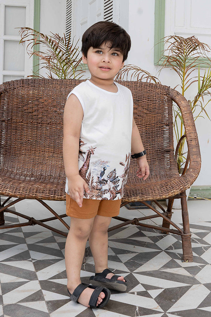 Let your little explorer roam free in our safari adventure sleeveless set! Paired with comfy brown shorts with an elastic waistband for easy dressing, made with soft, breathable fabric to keep your child cool and comfy all day long.